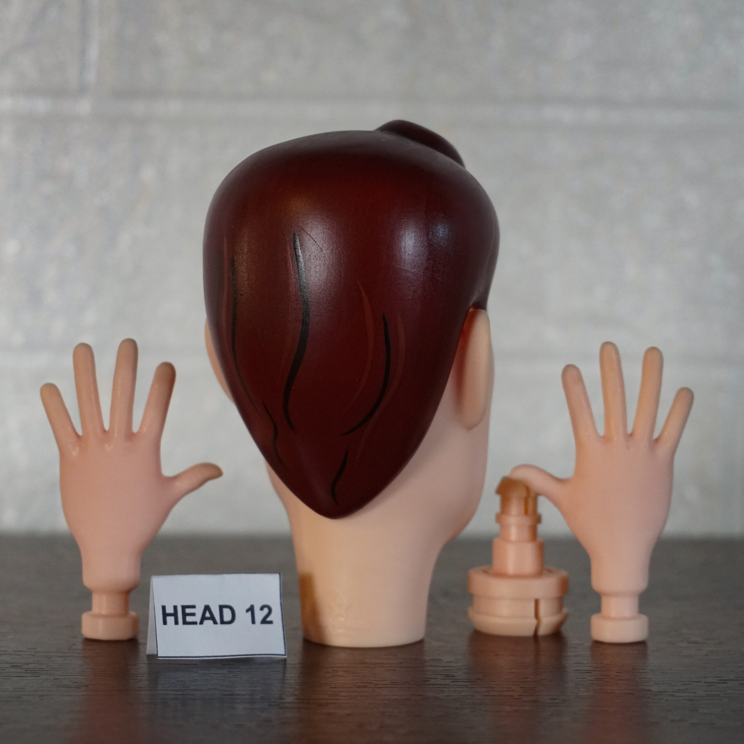 The head features two small marks on the cheek, resulting from the printing process.