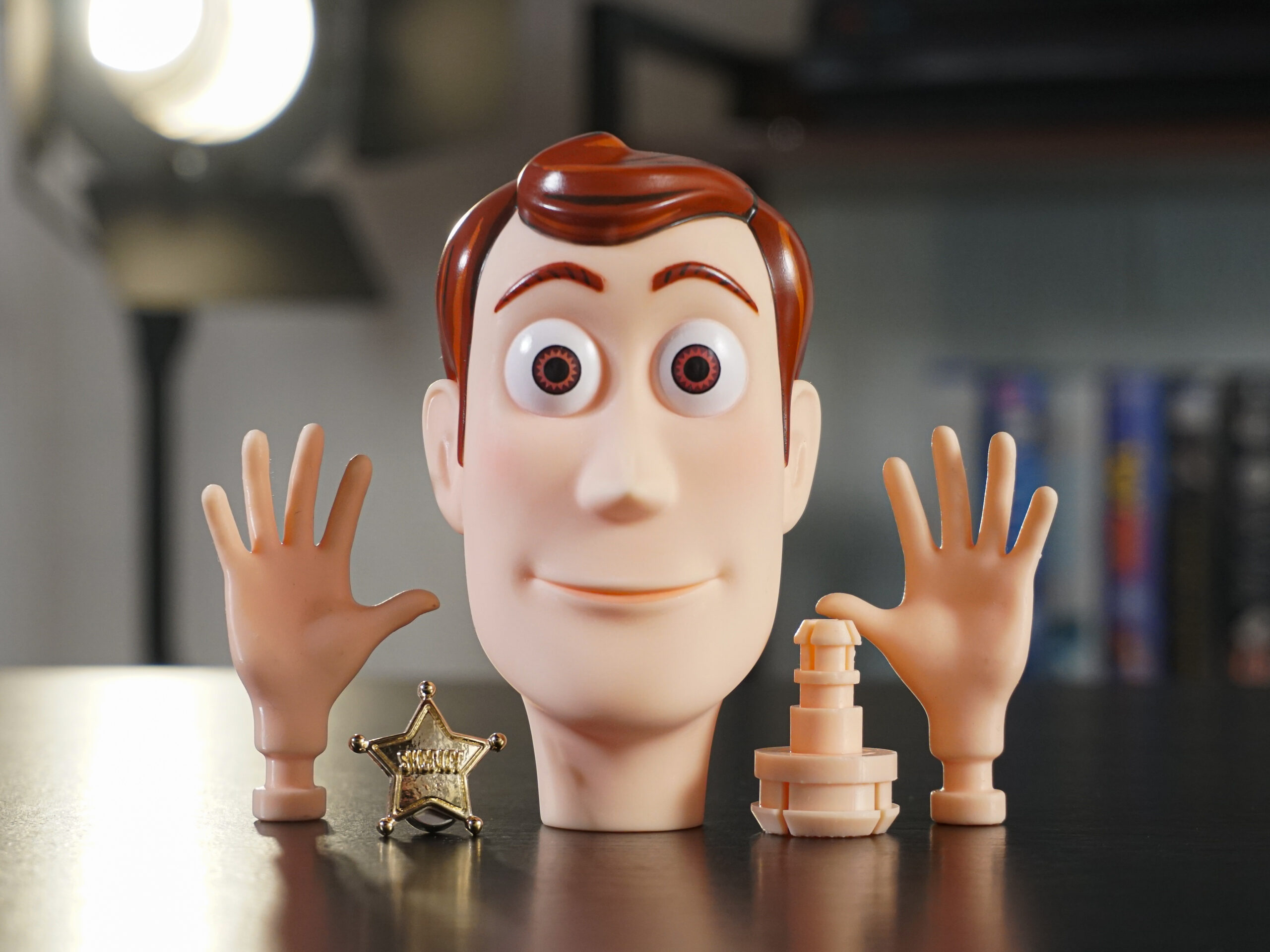 Custom head inspired by Woody’s toy-mode design from Toy Story 2